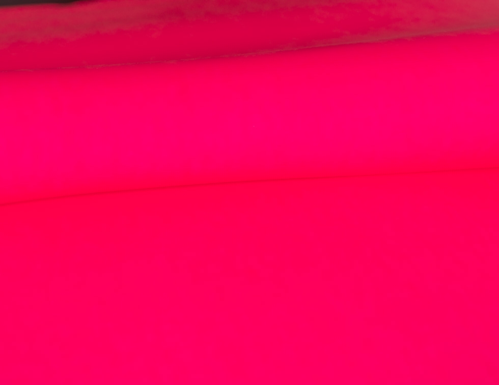 Fluo to materiał powlekany poliuretanem. Tkanina jest gładka, miękka w chwycie oraz gumowata w dotyku. Fluo nie jest rozciągliwy. Materiał charakteryzują fluorescencyjne kolory oraz właściwości wodoodporne. Nie jest podatny za zarysowania ale wytrzymały.